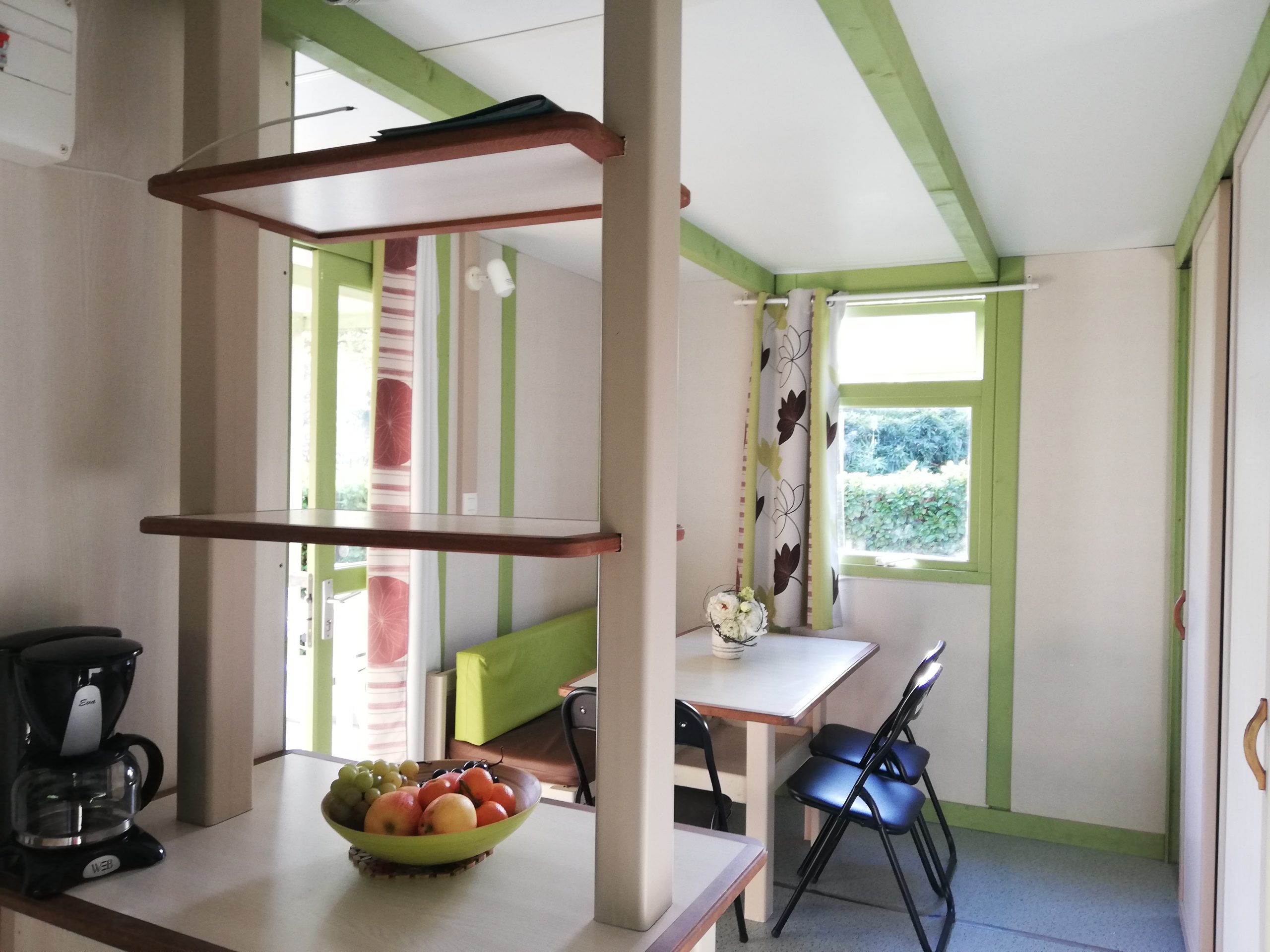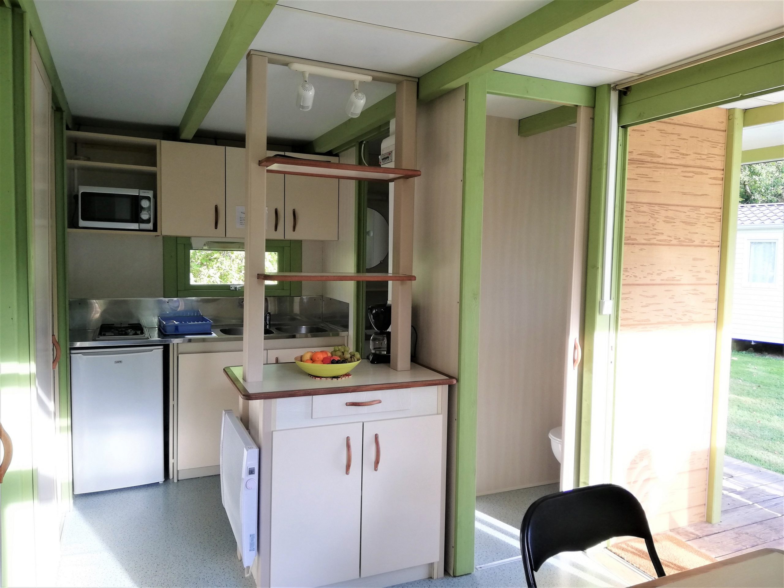 Avec ses deux chambres bien aménagées, le chalet peut accueillir jusqu’à 5 personnes. La chambre principale est équipée d’un lit double, tandis que la seconde offre des lits simples ou superposés. Ainsi, tout le monde profite d’un espace adapté. De plus, un salon convivial comprend un coin repas et une kitchenette équipée. Vous y trouverez un réfrigérateur, des plaques de cuisson et tous les ustensiles nécessaires pour préparer vos repas.