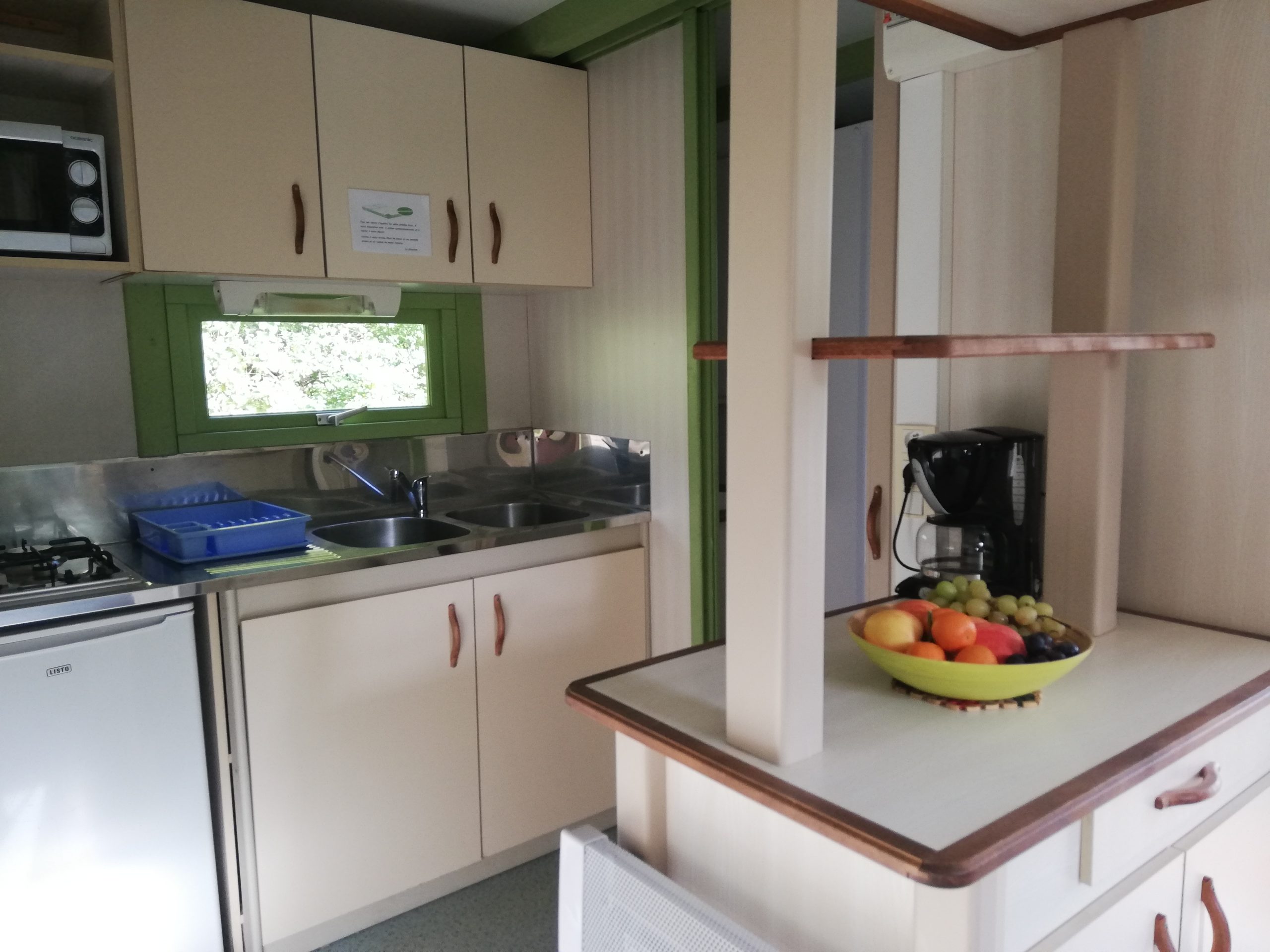 1 kitchenette avec petit frigo, 2 feux gaz, micro-ondes, cafetière