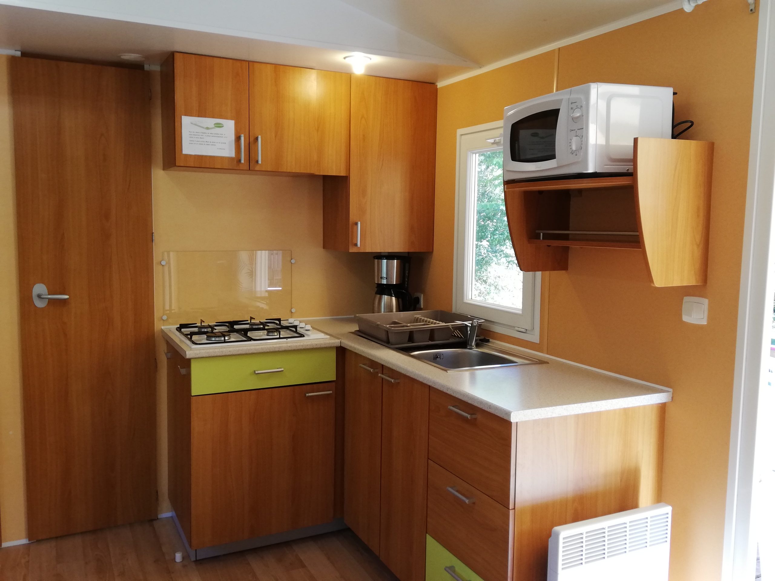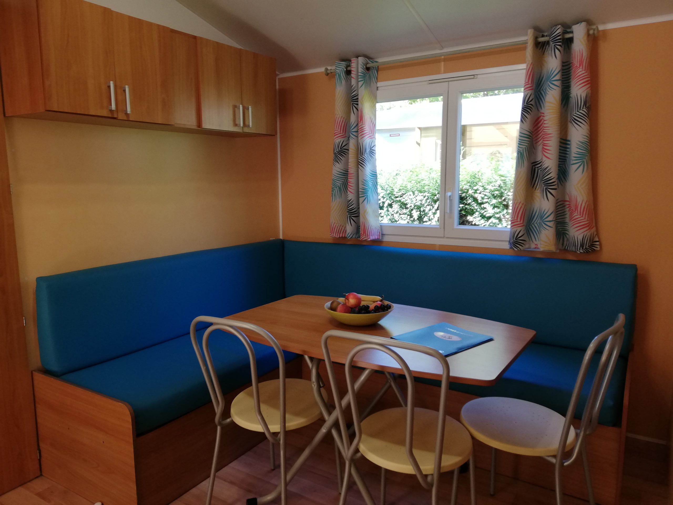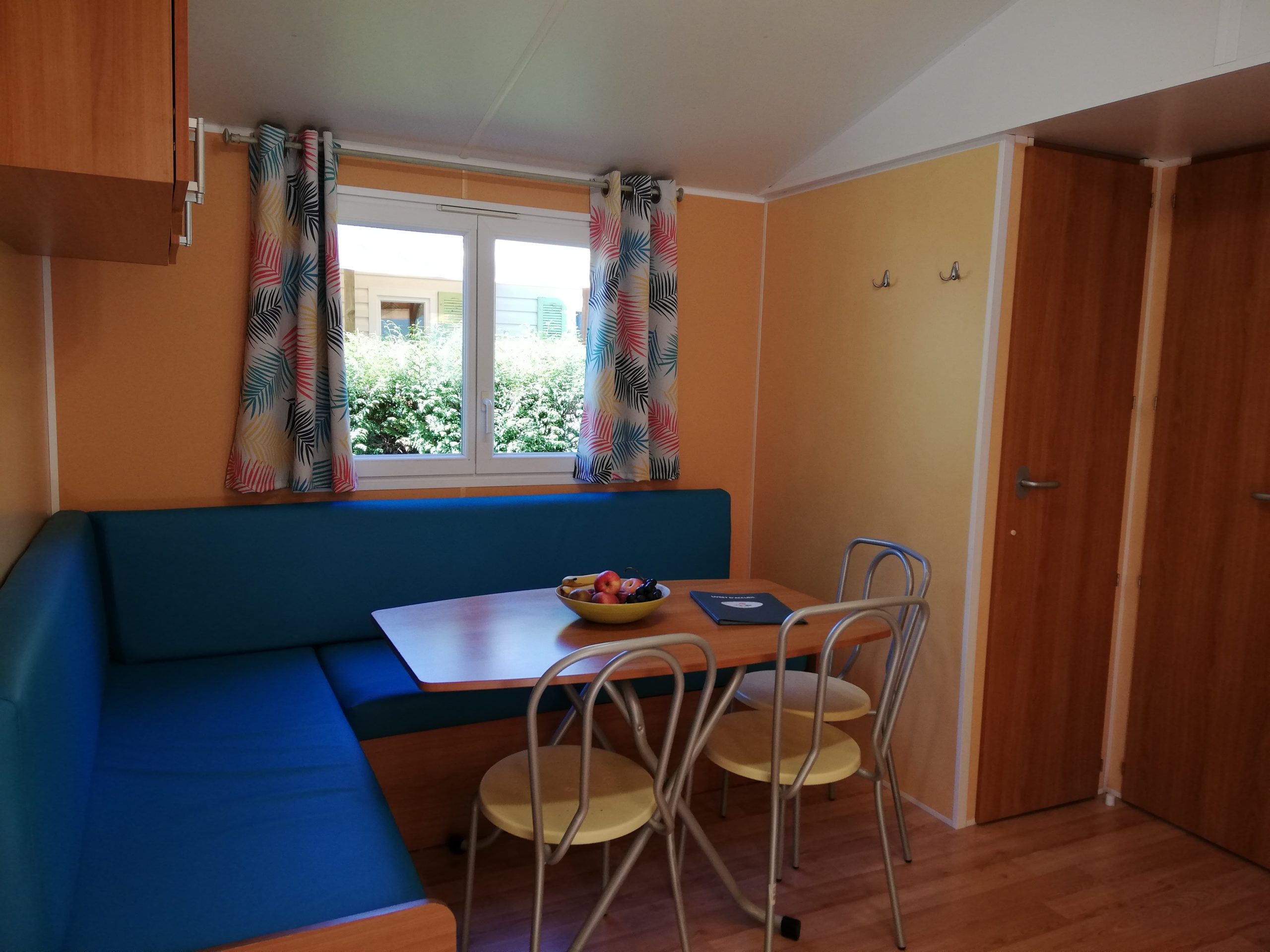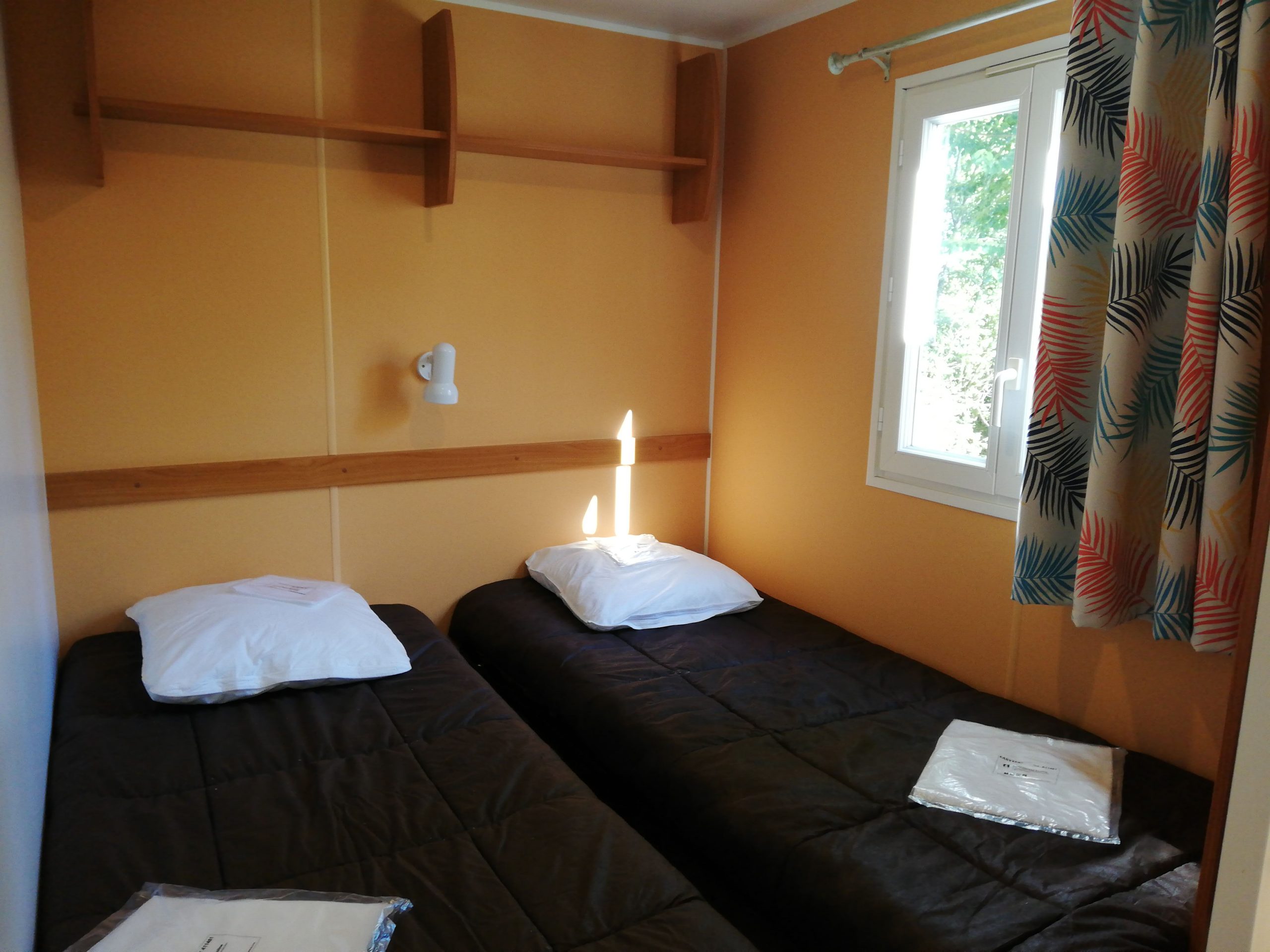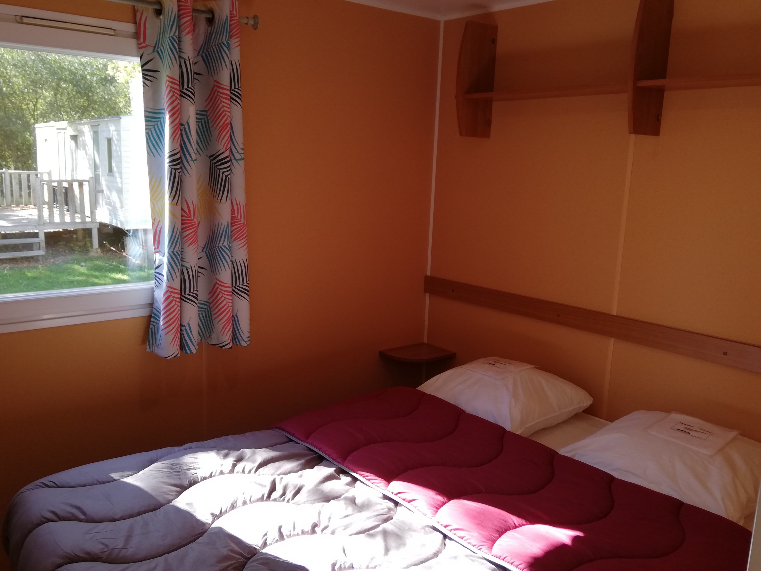 Ce mobil-home de 31 m² , climatisé, est idéal pour les groupes ou les grandes familles grâce à sa configuration modulable. Ses lits simples rapprochables permettent d’adapter l’espace en fonction des besoins, parfait pour accueillir plusieurs couples ou offrir plus de flexibilité.
